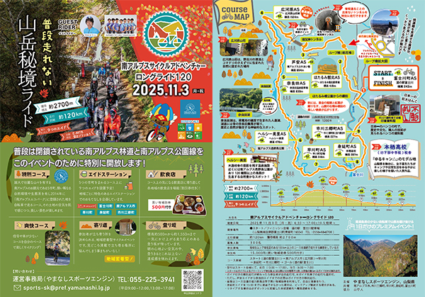 | 大会名 | 南アルプスサイクルアドベンチャーロングライド120 ~普段走れない山岳秘境ライド~ |
